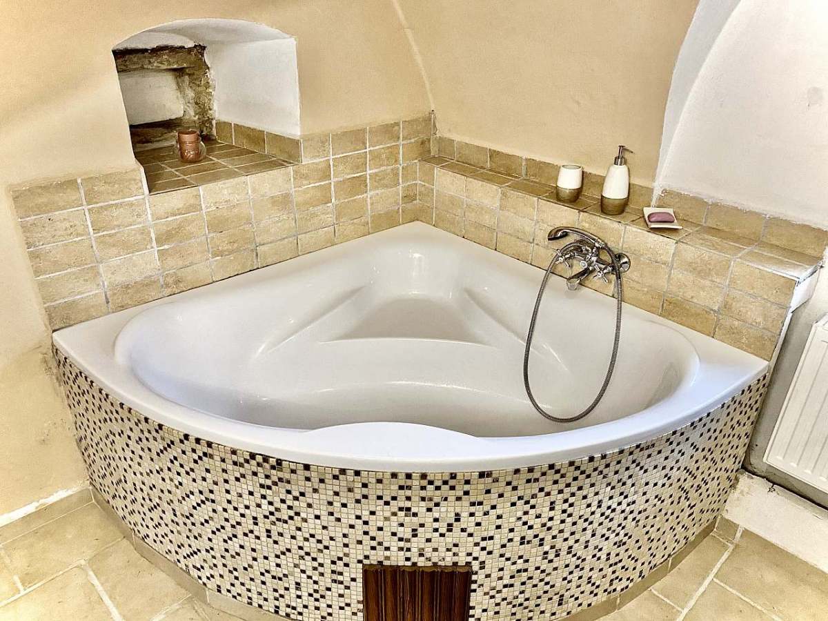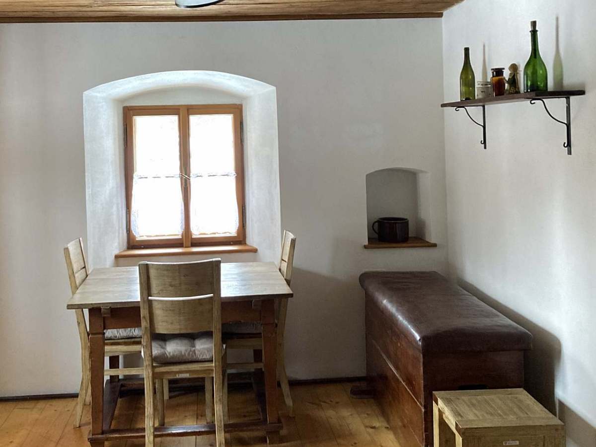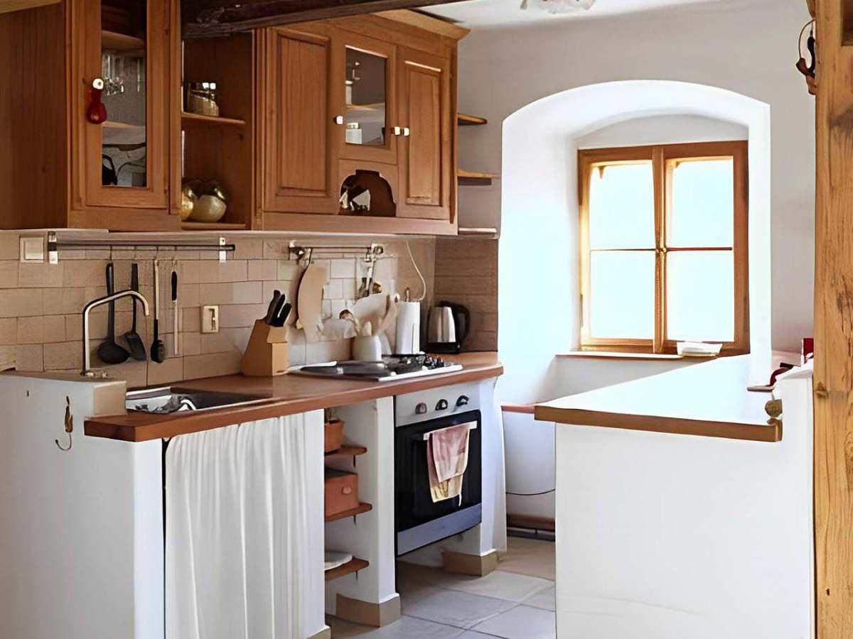 Kuchyňský kout s ostrůvkem vám poskytne vše potřebné pro přípravu jídel i pro více osob: varnou desku, horkovzdušnou a mikrovlnnou troubu, myčku nádobí, varnou konvici, nerezový dřez, mnoho úložných prostor, veškeré nádobí, příbory atd. Po předchozí dohodě lze k vaření využít i krásný kachlový sporák s troubou a velkou varnou plochou.