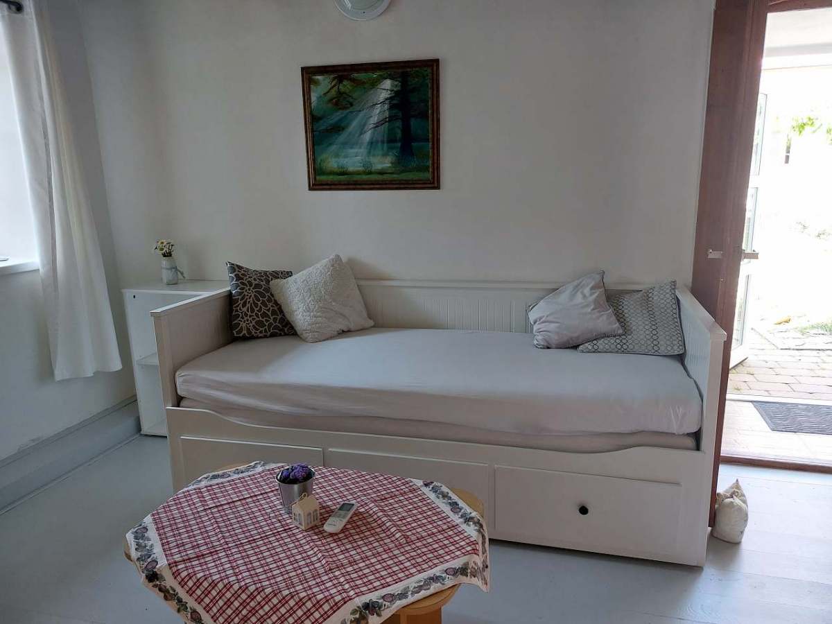 Apartmán č. 3 "Stodola" 1+KK pro 3 osoby s původní zdí a výhledem do zahrady. Cena za týden je 12600 Kč.