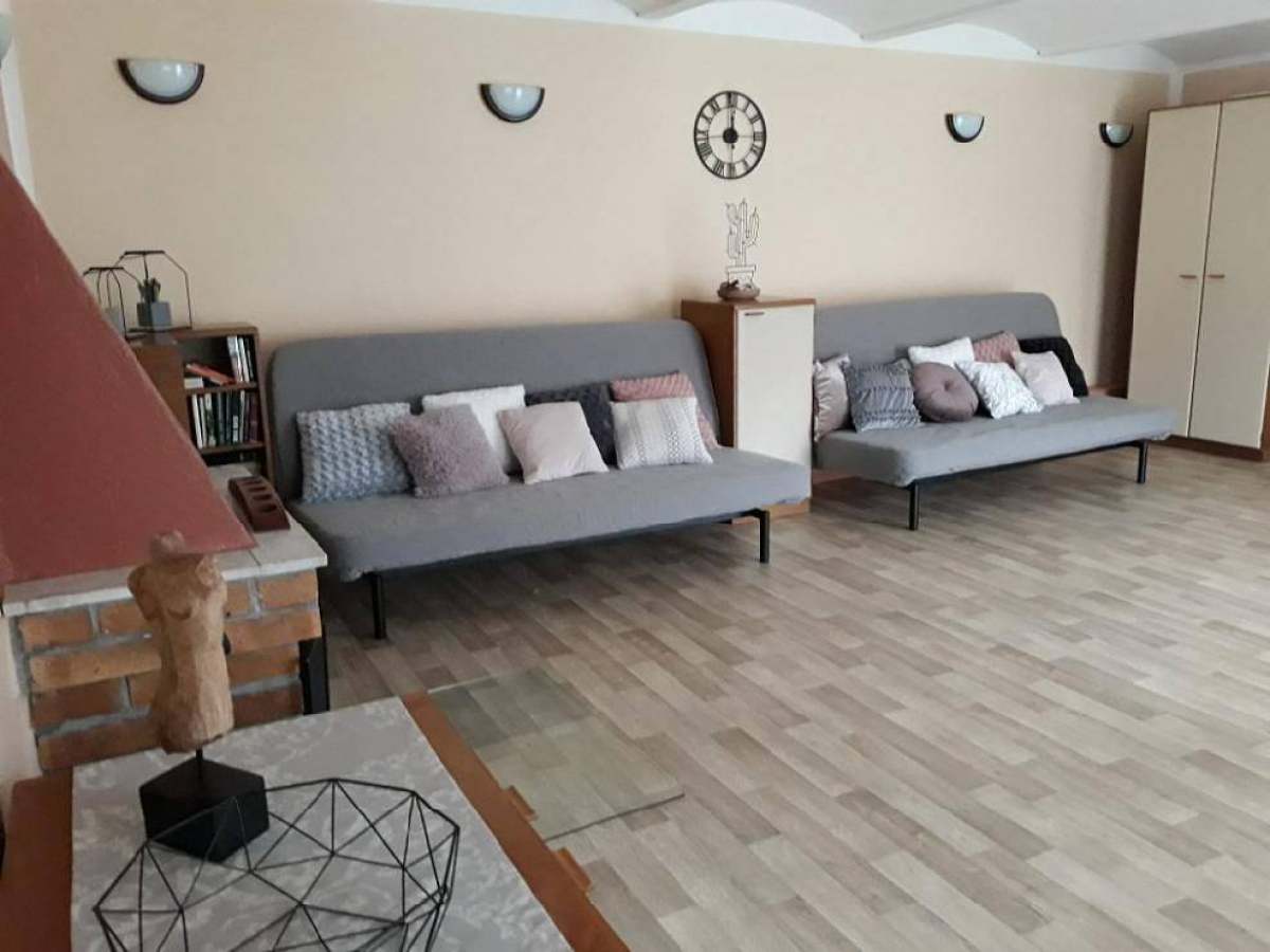 Apartmán č. 2: plně vybavená kuchyň pro 6 osob, s mikrovlnnou troubou, varnou konvicí, lednicí, myčkou nádobí, velký obývák 5x7 m s krbovými kamny, 2 rozkládací pohovky, WIFI, TV, malý samostatný pokoj s rozkládací pohovkou. Stolování je možné uvnitř i venku pod pergolou. Dvůr i zahrada jsou vybaveny zahradním nábytkem. WIFI je dostupná po celém objektu.