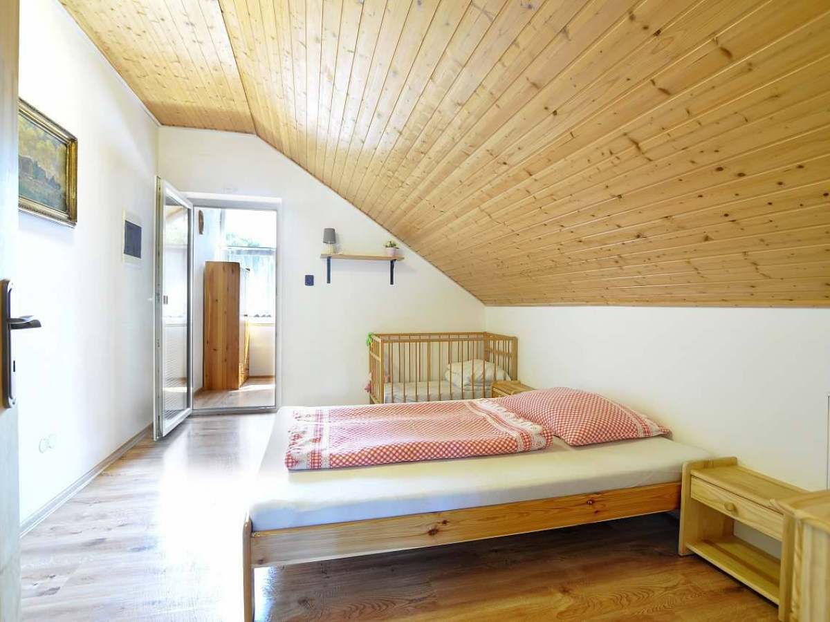 V prvním nadzemním patře se nachází tři ložnice dostupné ze společné chodby. První ložnice má kapacitu 4 lůžka. Naproti tomuto pokoji se nachází pokoj s kapacitou 2 lůžka. Na konci chodby, naproti druhé koupelně, se nachází poslední ložnice s manželskou postelí a dětskou postýlkou. Každý pokoj má úložné prostory, noční stolky, žaluzie a lampičky.